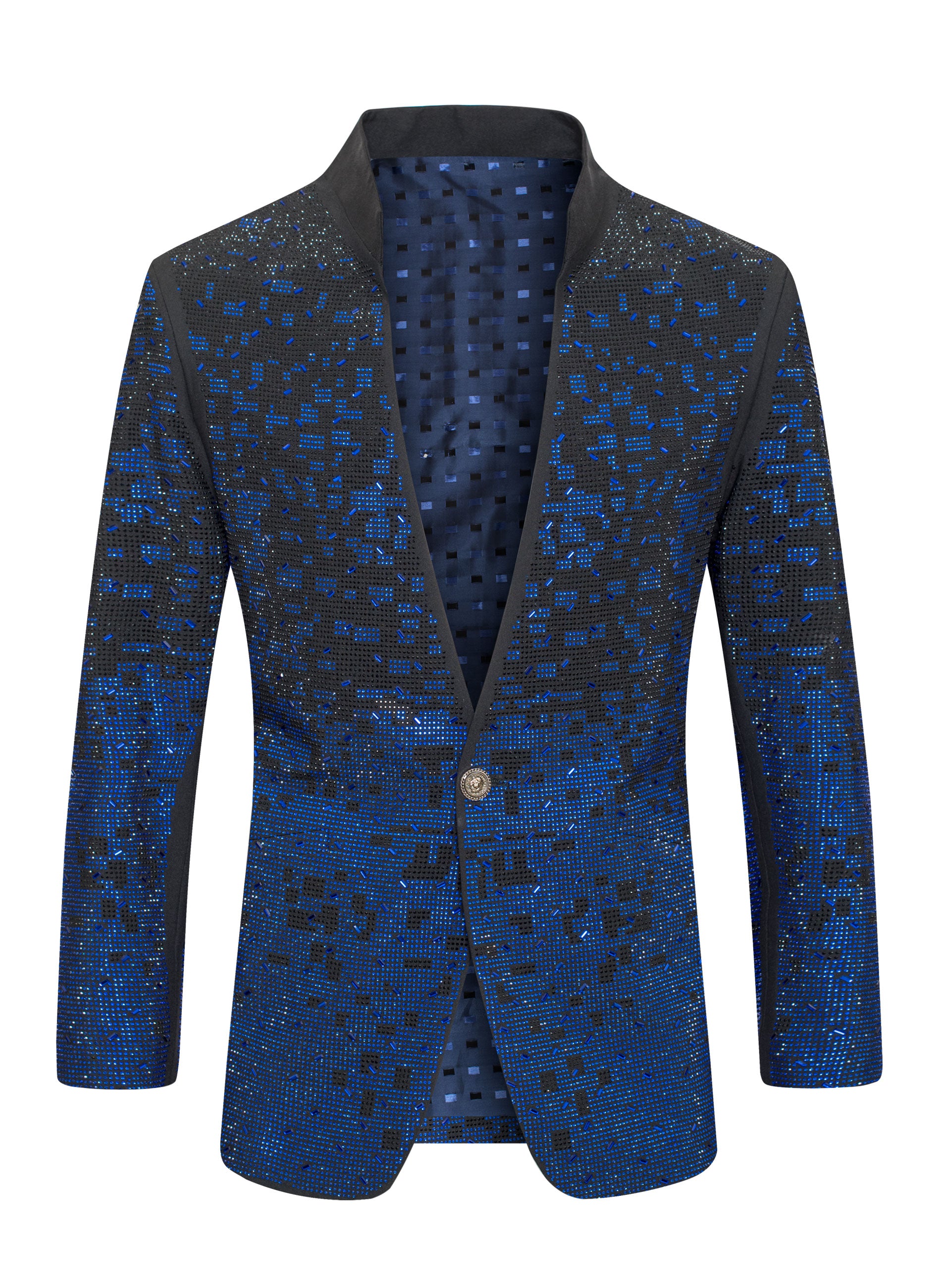 Luxurious and eye-catching piece designed to dazzle and impress. This blazer is adorned with meticulously placed rhinestones that shimmer with every movement, making it perfect for those who want to make a bold fashion statement. Crafted from high-grade polyester, cotton, and spandex, the rhinestones are subtly integrated into the fabric and densely clustered for a more dramatic effect.