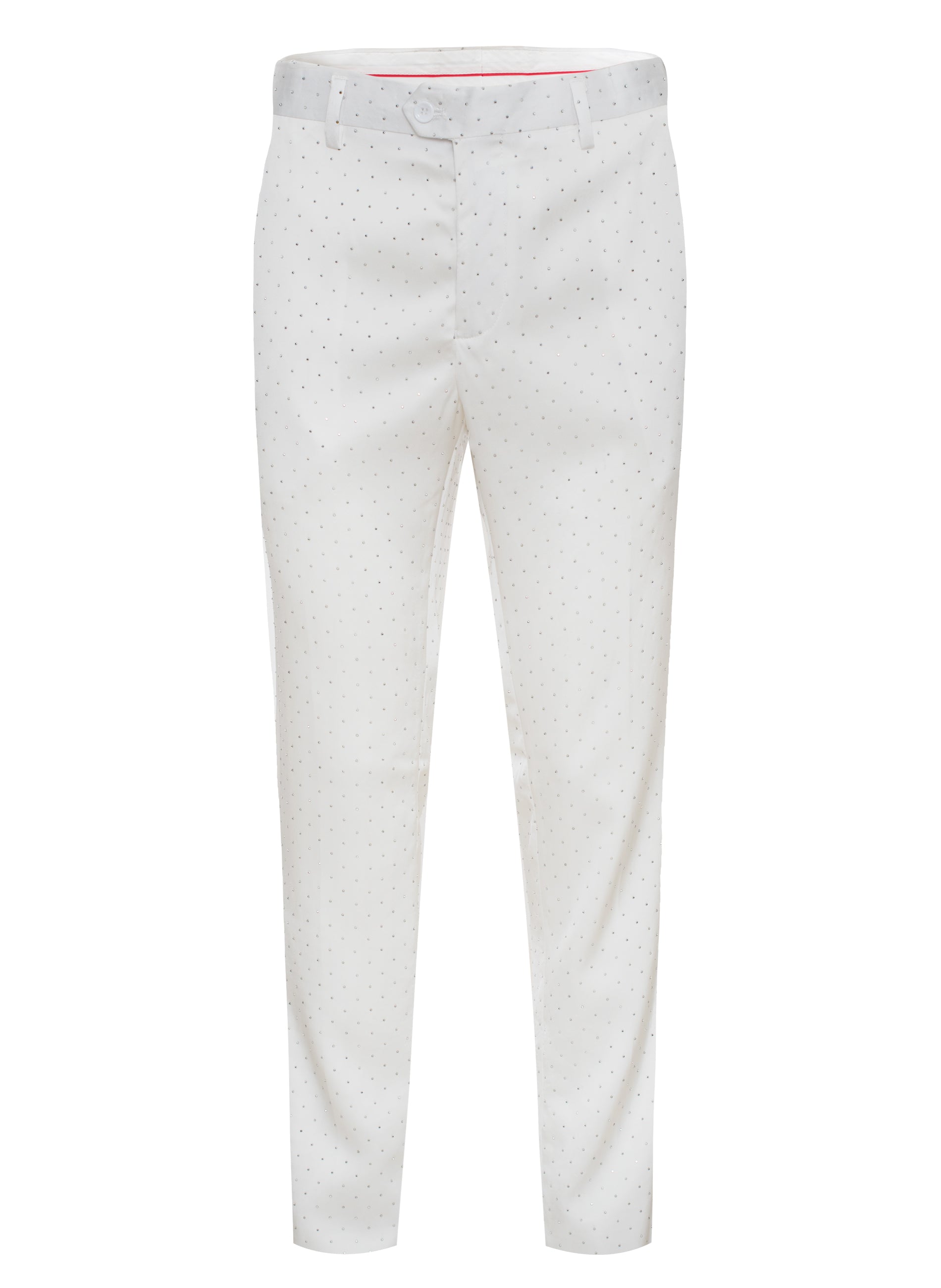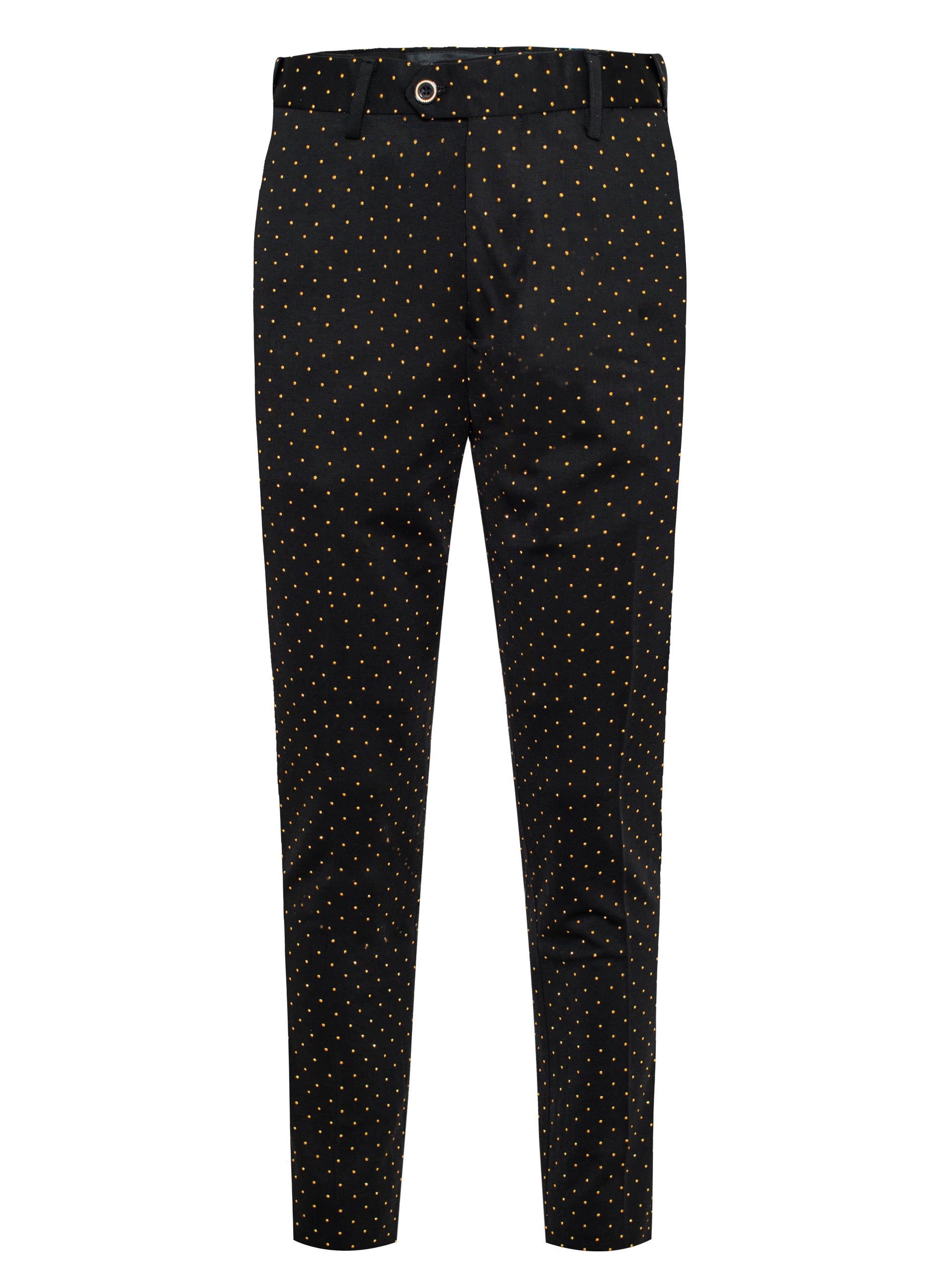 Luxurious and eye-catching piece designed to dazzle and impress. This pant is adorned with meticulously placed rhinestones that shimmer with every movement, making it perfect for those who want to make a bold fashion statement. Crafted from high-grade polyester, cotton, and spandex, the rhinestones are subtly integrated into the fabric and densely clustered for a more dramatic effect.